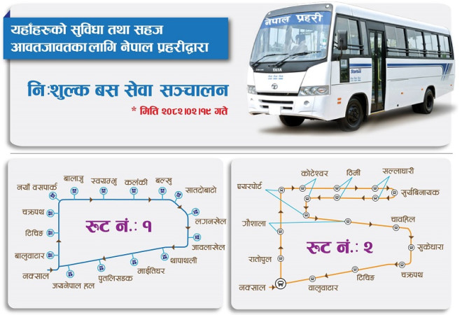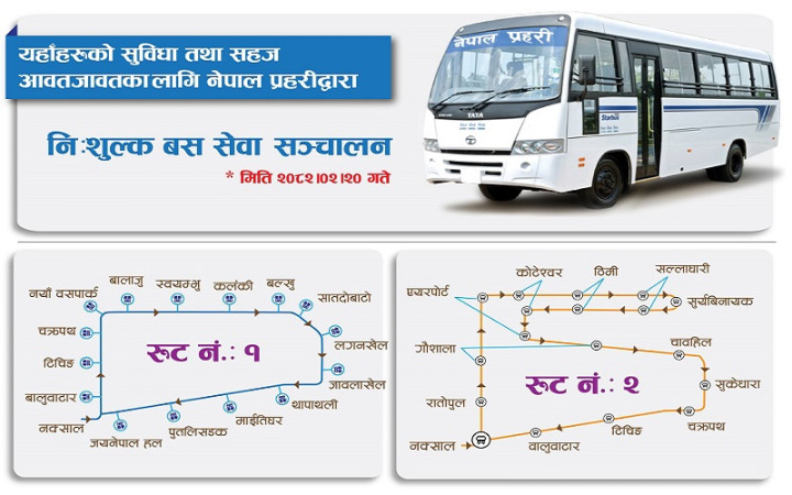 काठमाण्डौ उपत्यकामा प्रहरीको निःशुल्क बस सञ्चालन