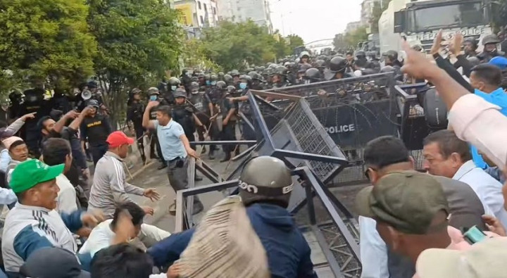 शिक्षकहरूले निषेधित क्षेत्र तोड्न खोजेपछि प्रहरीसँग झडप